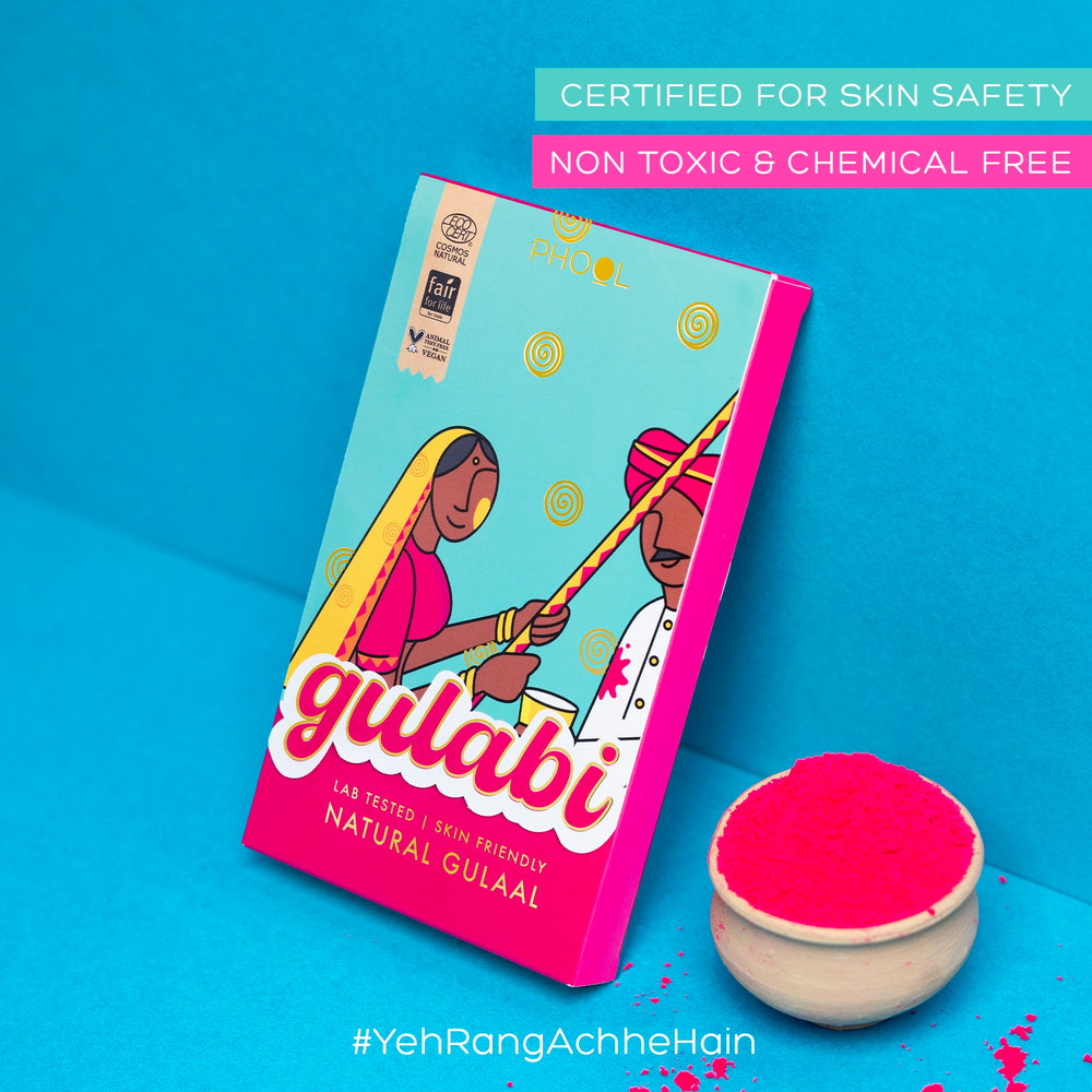 - Unlike the toxic chemical based Gulaal commonly sold in the market, Phool Organic Gulaal is 100% chemical-free.