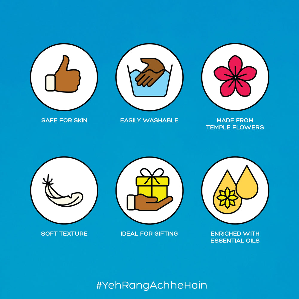 🌹 100% Natural - Handcrafted from upcycled temple flowers, Indian Rose, herbs, and organic ingredients. Zero chemicals, pure celebration.