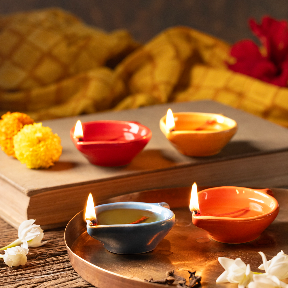 7. 🌸 Pallav Handmade Ceramic Diyas (4U)