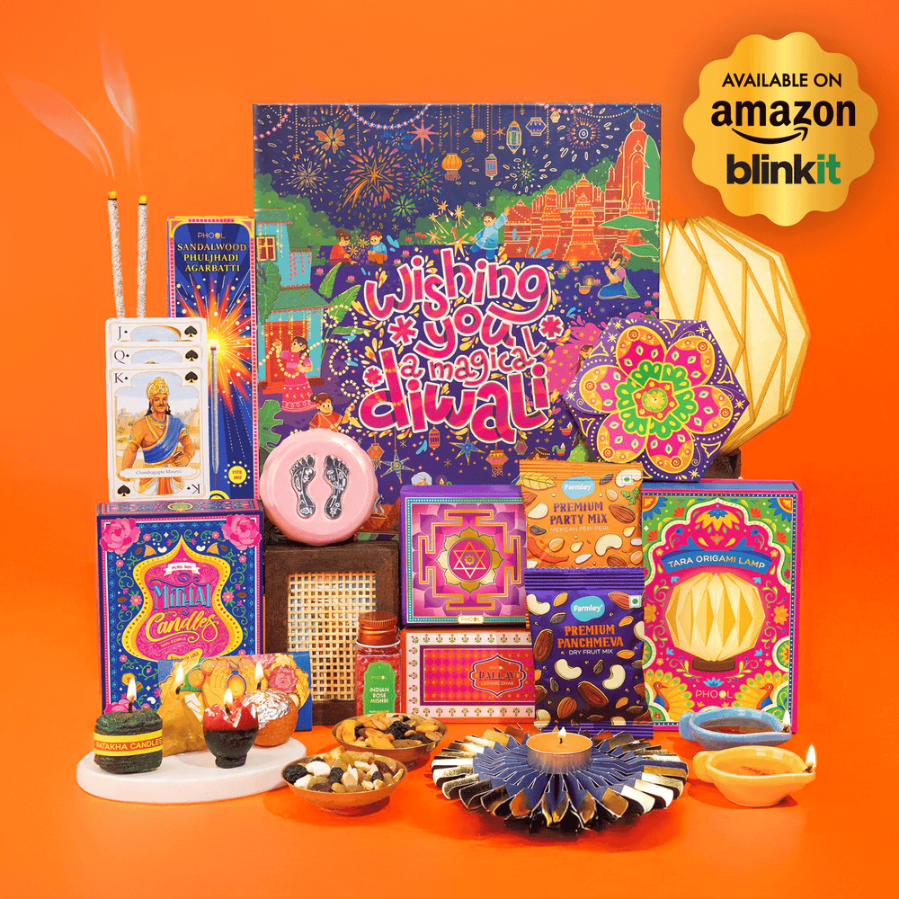 The Phool Diwali Dazzle Giftbox is filled with fragrance, light, indulgence, and festive charm. Thoughtfully curated with rituals, décor, and gourmet treats, it adds extra dazzle to every celebration.