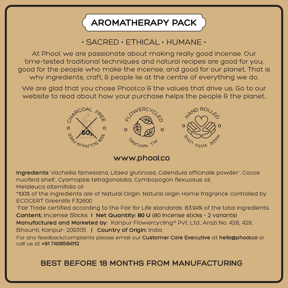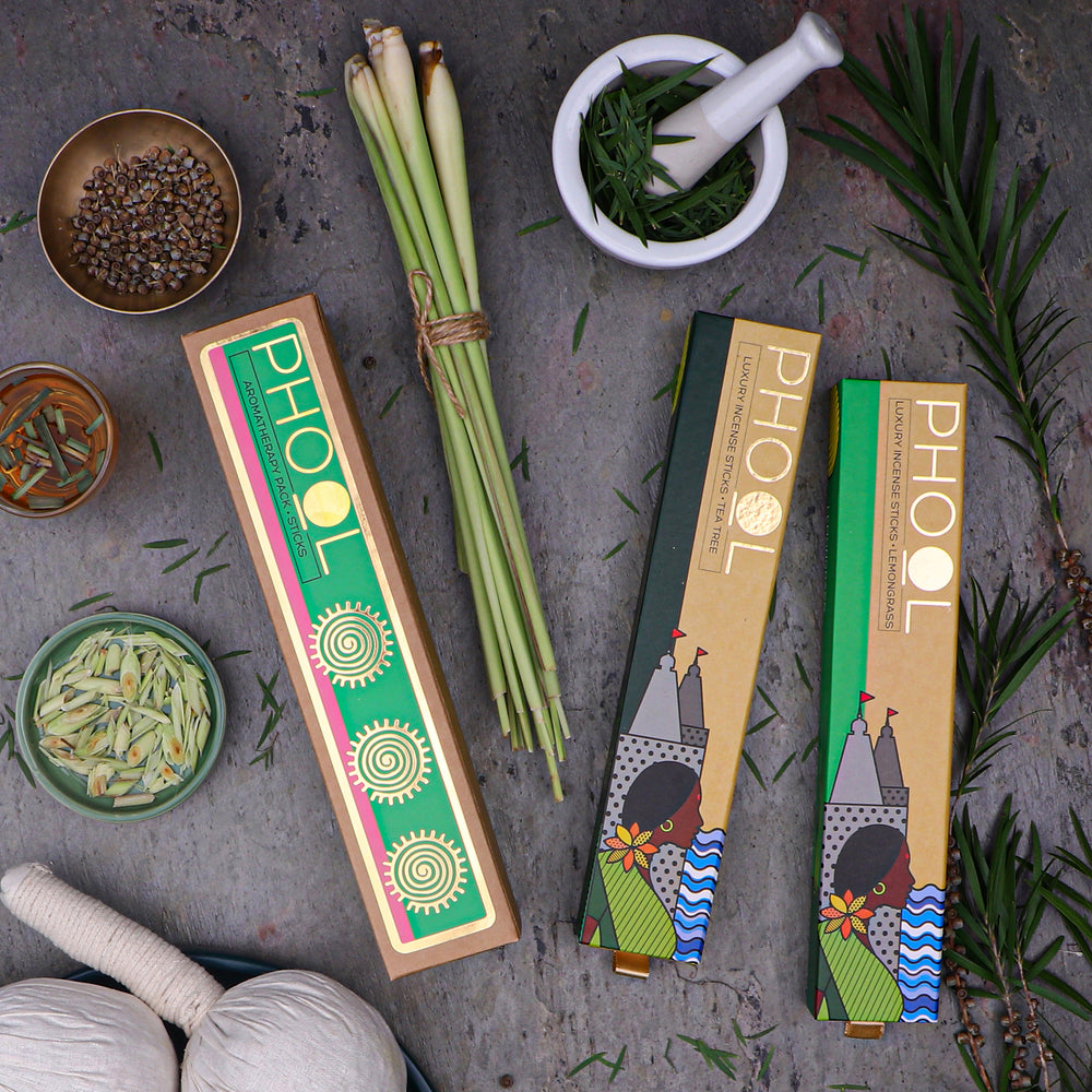 PHOOL AROMATHERAPY PACK - NATURAL INCENSE STICKS (TEA TREE & LEMONGRASS)