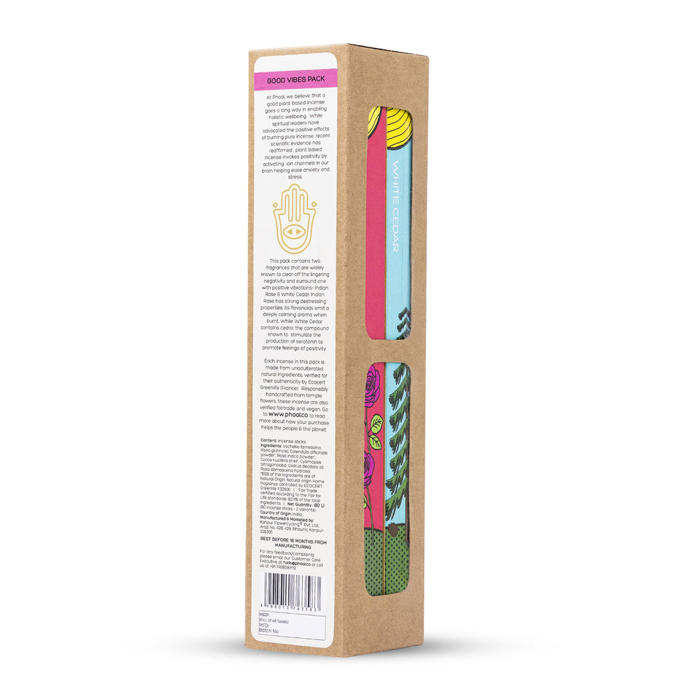 PHOOL GOODVIBES PACK - NATURAL INCENSE STICKS (INDIAN ROSE & WHITE CEDAR)