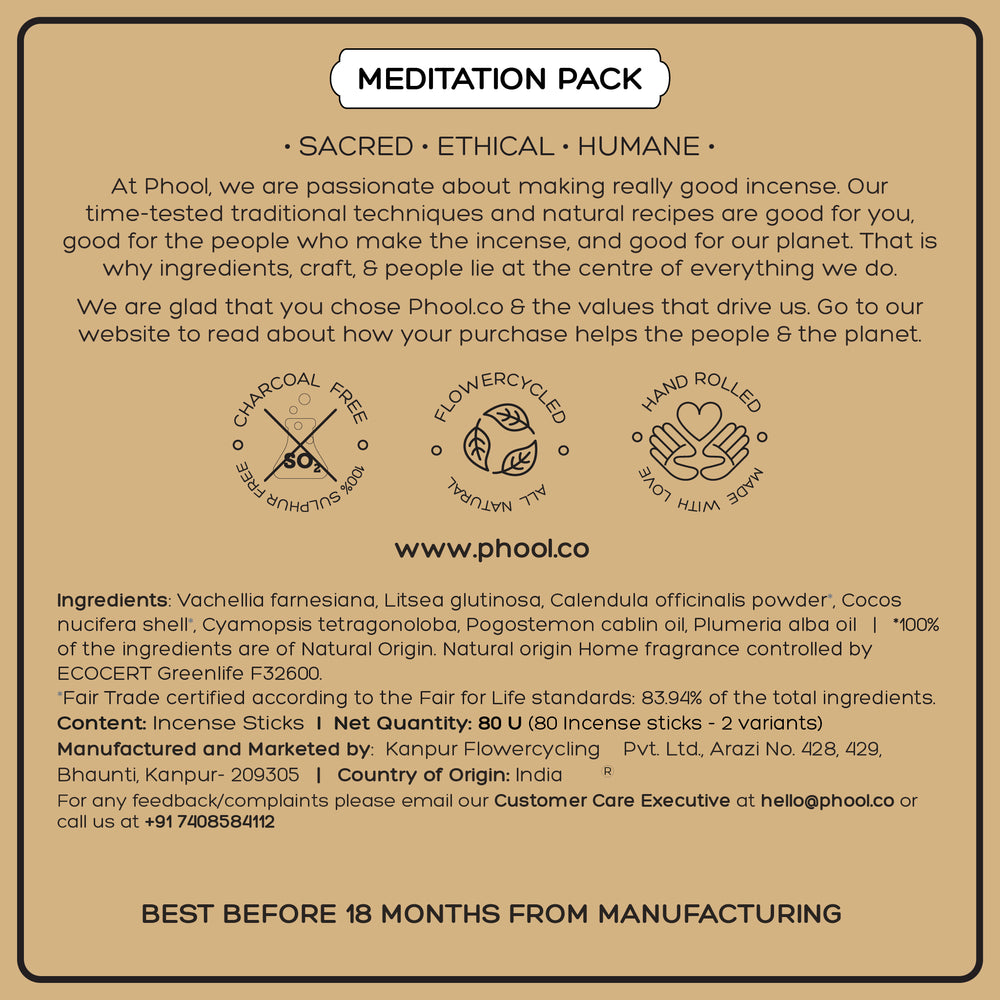 PHOOL MEDITATION PACK - NATURAL INCENSE STICKS (NAGCHAMPA & PATCHOULI)